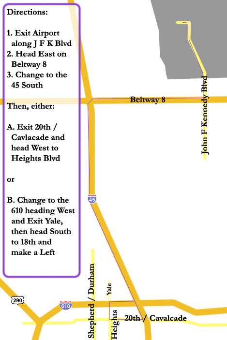 A bit of a Warning: Houston drivers are very chaotic, as are our streets. The streets are not well maintained, and the signs are not always clear (and don’t give much warning). Please, don’t try to drive California speeds here — with the drivers, poorly maintained roads, and inadequate signs speeding becomes quite dangerous.